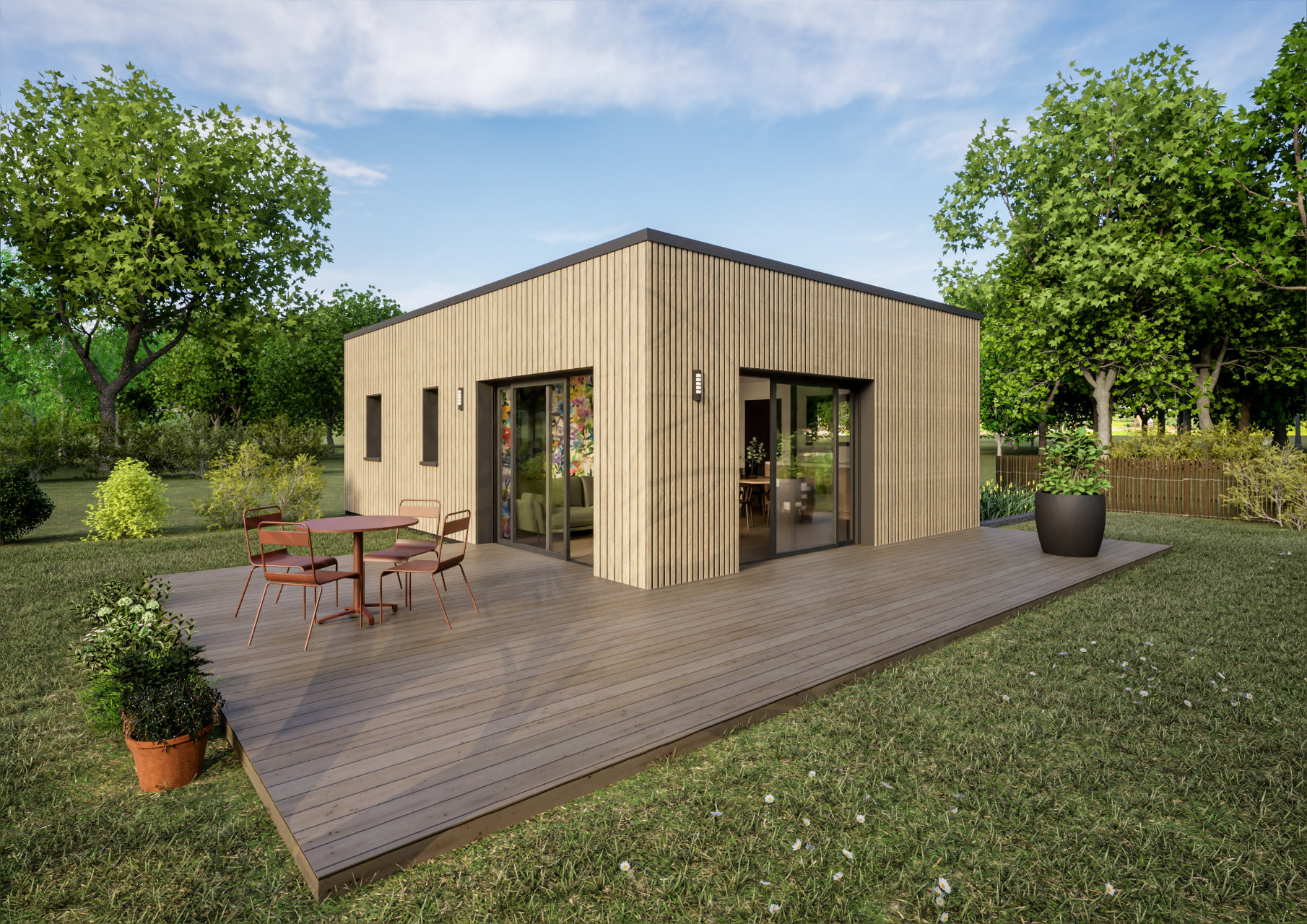 Avec ses 49,9 m² en plain-pied, AMOUR est la maison parfaite pour un premier achat ou un projet minimaliste. Compacte mais ingénieuse, elle optimise chaque mètre carré pour offrir un espace chaleureux et fonctionnel.