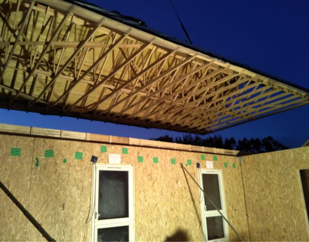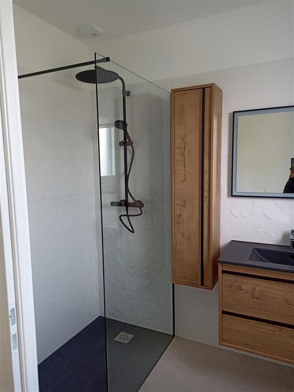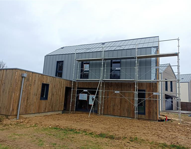 La vêture de l’ensemble de la maison est faite de bois et d’aluminium à joint debout. Le bardage du pignon est réalisé en douglas français pose horizontale à faux claire-voie.