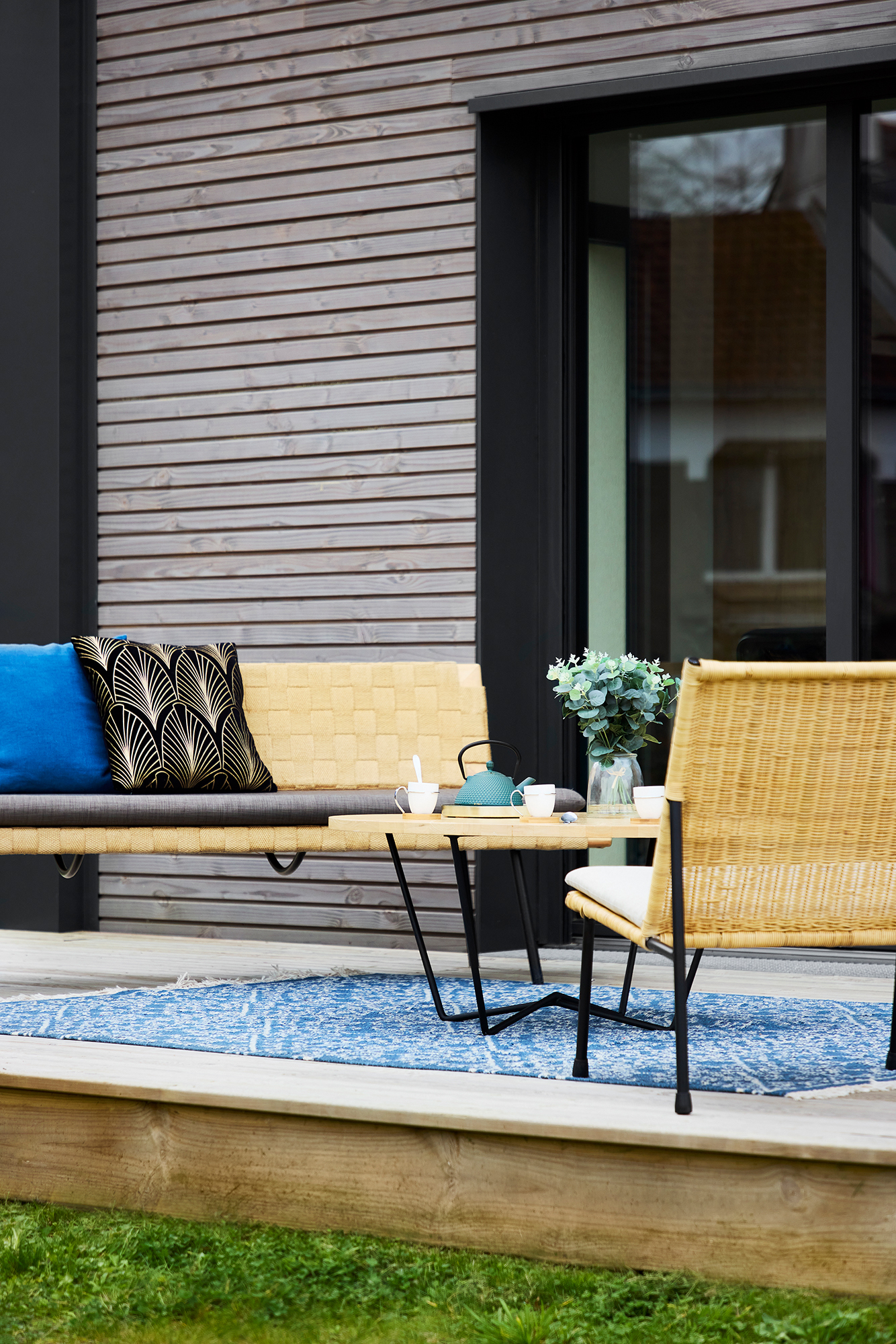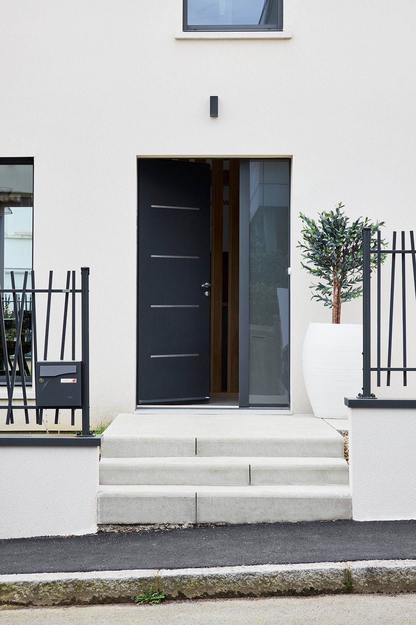 Les espaces de vie sont largement ouverts sur le jardin orienté sud, engazonné et planté d’arbustes. Les apports de lumière naturelle sont ainsi assurés.